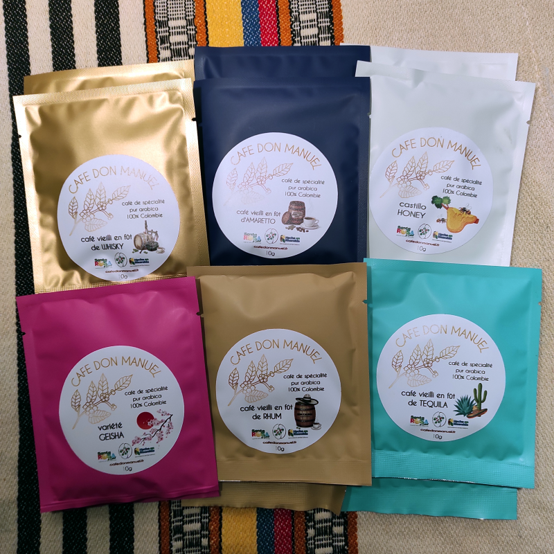 Découvrez notre coffret exclusif de 12 « Drip Bags » (filtres individuels), la solution idéale pour savourer un café de spécialité fraîchement moulu, sans machine, où que vous soyez. Ce pack découverte regroupe des profils aromatiques audacieux et des processus de fermentation rares, offrant une véritable immersion dans le terroir colombien.